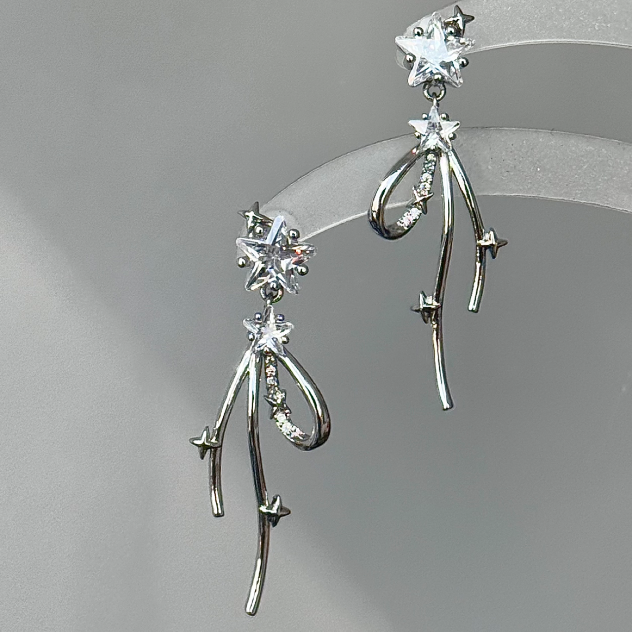 DearLola "Celestial Snowbell" Solid S925 Sterling Silver Lily of the Valley & Bow Earrings - Luxurious Ear Studs