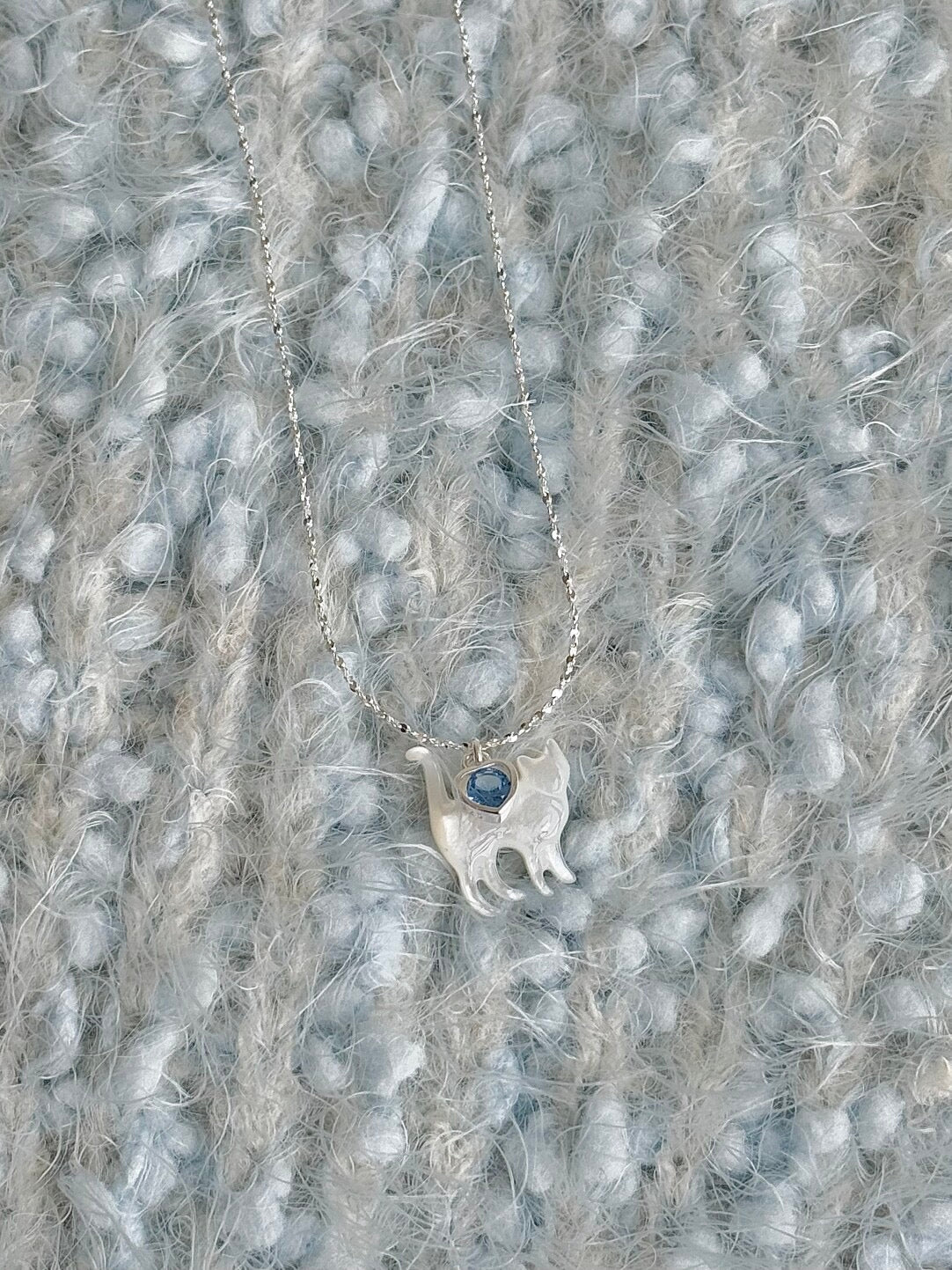 LolaWhite「クラウドキトゥン」S925スターリングシルバーキャットペンダントネックレス、ブルーハートジルコン付き - エッジィ&スイート