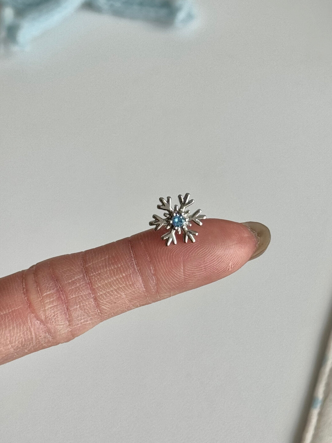 Pen a silent, poetic note with the "Snowland Love Letter" earrings. This delicate piece features a tiny snowflake adorned with blue zircon, crafted from solid 999 pure silver. Available as classic studs for understated elegance or as modern ear cuffs for a piercing-free option, it carries the quiet, gentle romance of a winter whisper. Its cool blue sparkle and pristine silver finish create a look that is both tender and refreshingly serene.