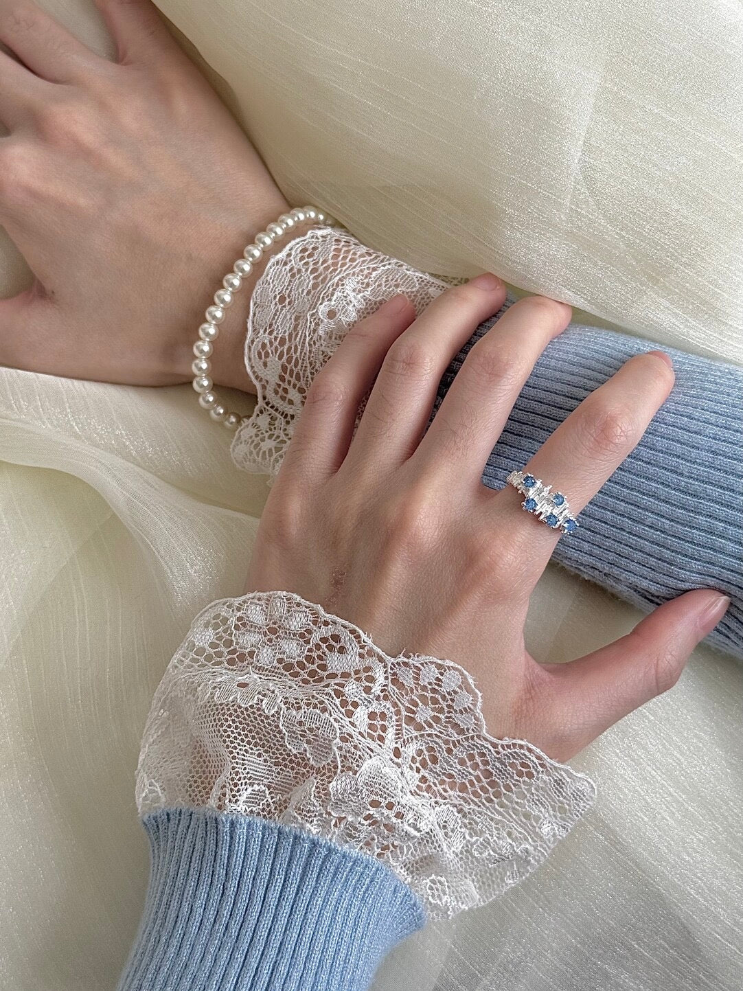 LolaWhite "Arctic Blue Tone" S925 Sterling Silver Open Ring with Glacial Blue Zircon - Icy Aesthetic & Unique Design