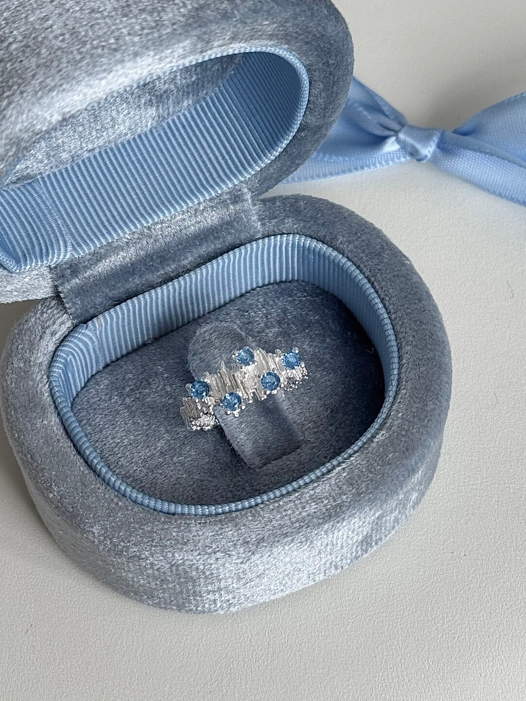 This "Arctic Blue Tone" open ring features a glacial-inspired design with a striking blue zircon, crafted from premium S925 sterling silver. The cool blue stone set within a sculpted silver band evokes the serene beauty of Arctic ice under a soft blue light. Its adjustable open design ensures a comfortable and customizable fit, while the minimalist yet bold structure creates a distinct icy elegance. Perfect for those who appreciate a refined, unconventional style with a touch of modern sophistication.