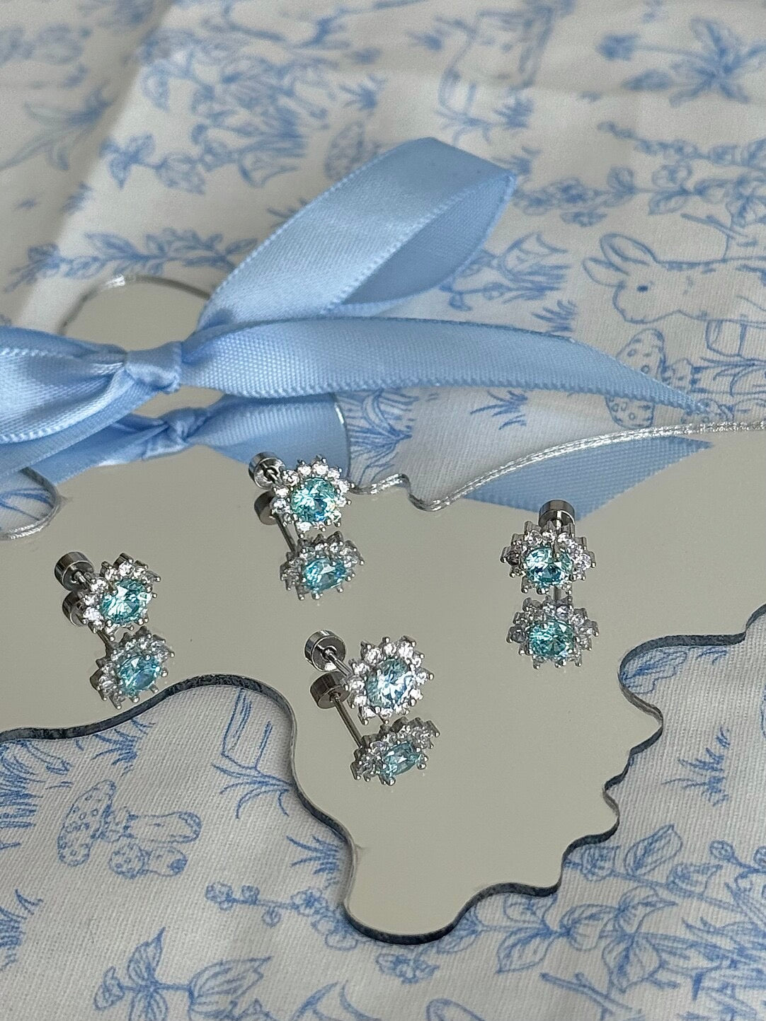 롤라화이트 "프로스티드 스파클" 블루 눈송이 귀걸이 - 아이시 엘레강스, 플랫 백 스터드