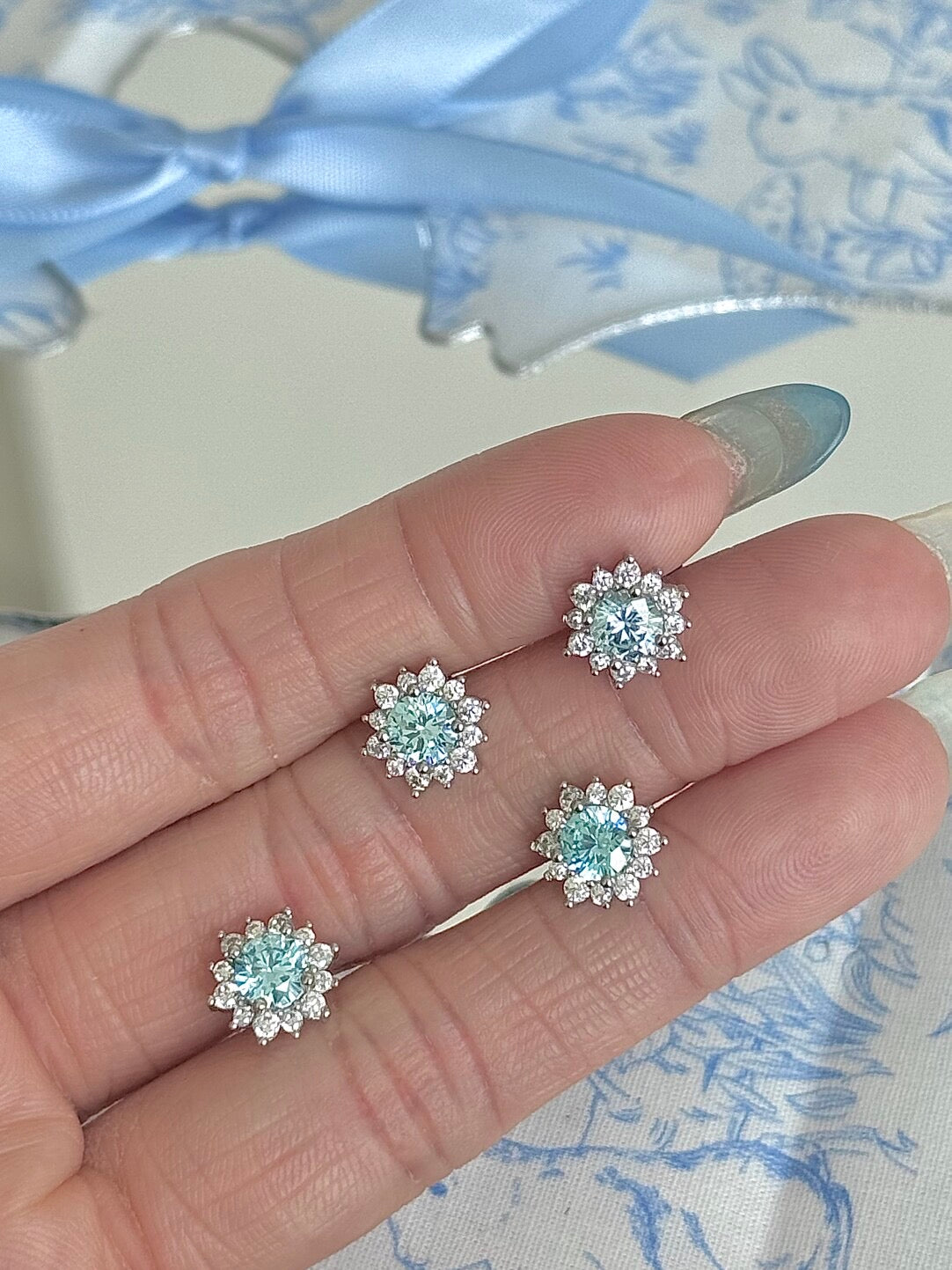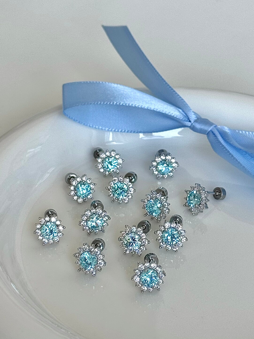 "프로스티드 스파클" 눈송이 스터드 귀걸이로 겨울 첫 서리의 고요하고 아름다운 아름다움을 담아보세요. 모든 귀걸이는 갓 내린 눈 위로 햇살이 눈부시게 반짝이는 듯 눈부신 블루 지르콘으로 정교하게 세팅되어 있습니다. 저자극성 서지컬 스틸 소재로 제작되었으며, 안정적인 플랫 백 포스트가 하루 종일 편안한 착용감을 선사합니다. 이 귀걸이는 얼음처럼 차가운 우아함과 절제된 세련미를 표현하며, 어떤 룩에도 섬세하고 겨울 특유의 매력을 더하기에 완벽합니다.