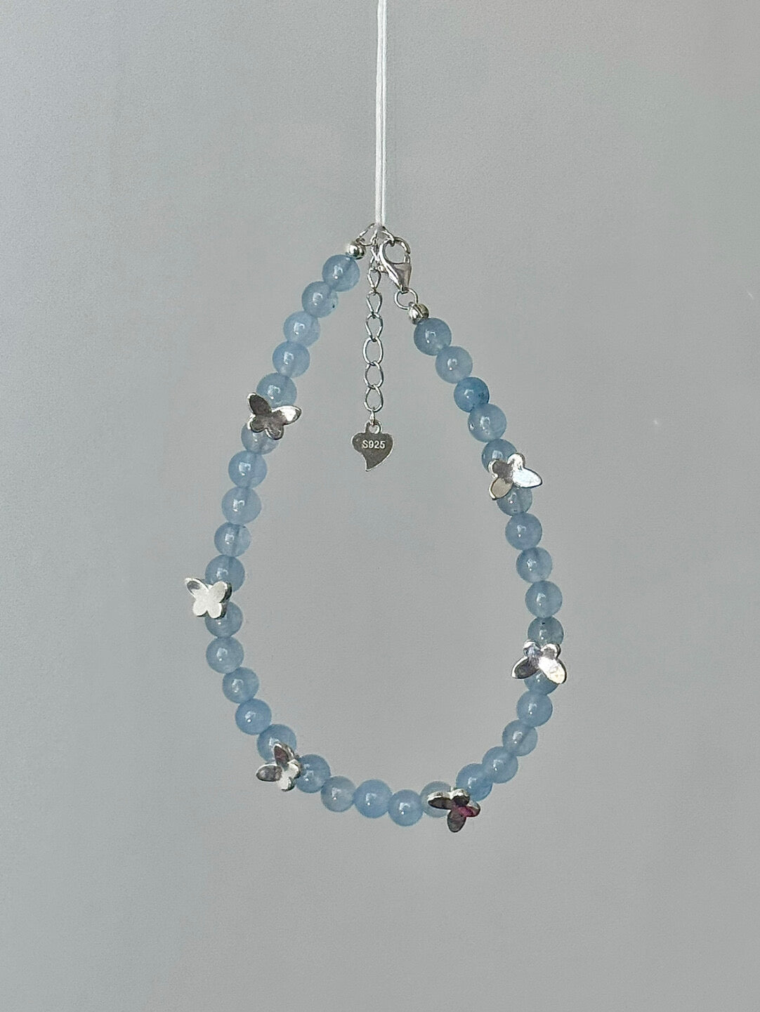 롤라화이트 "프로스트윙 버터플라이" 천연 아쿠아마린 스털링 실버 팔찌 | 차가움의 우아함