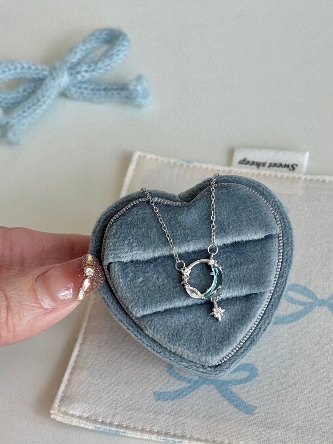 이 "얼음 호수" 목걸이는 우아한 네모난 별과 초승달 펜던트로 구성되어 있으며, 천연 아쿠아마린으로 장식되어 있습니다. S925 스털링 실버로 제작된 이 목걸이는 시원한 푸른 색조와 섬세한 천상의 디자인으로 달빛 아래 얼어붙은 호수의 고요한 아름다움을 담아냅니다. 천상의 매력과 얼음처럼 차가운 우아함이 완벽하게 어우러져 독특하면서도 매혹적인 천상의 아름다움을 선사합니다.