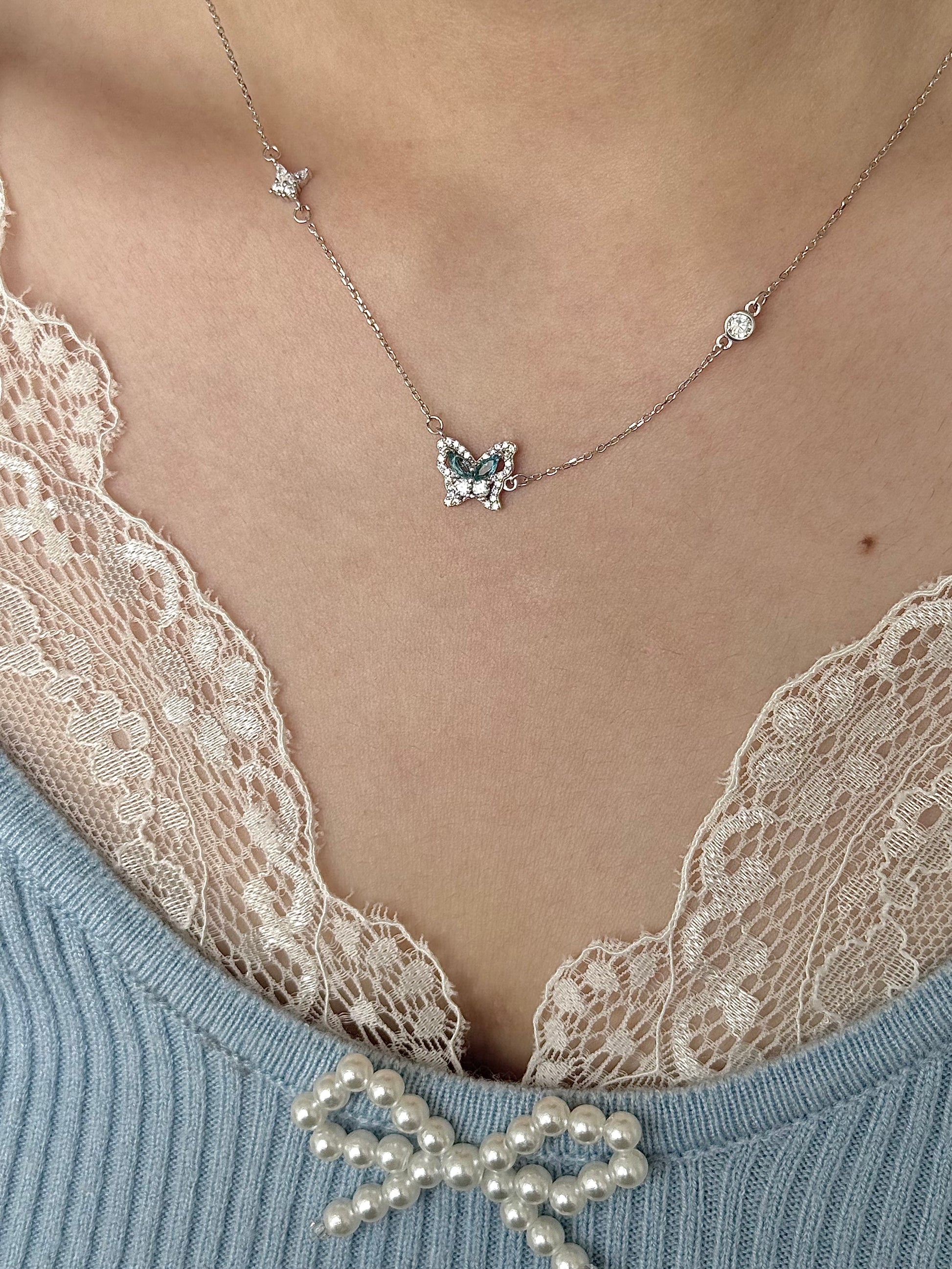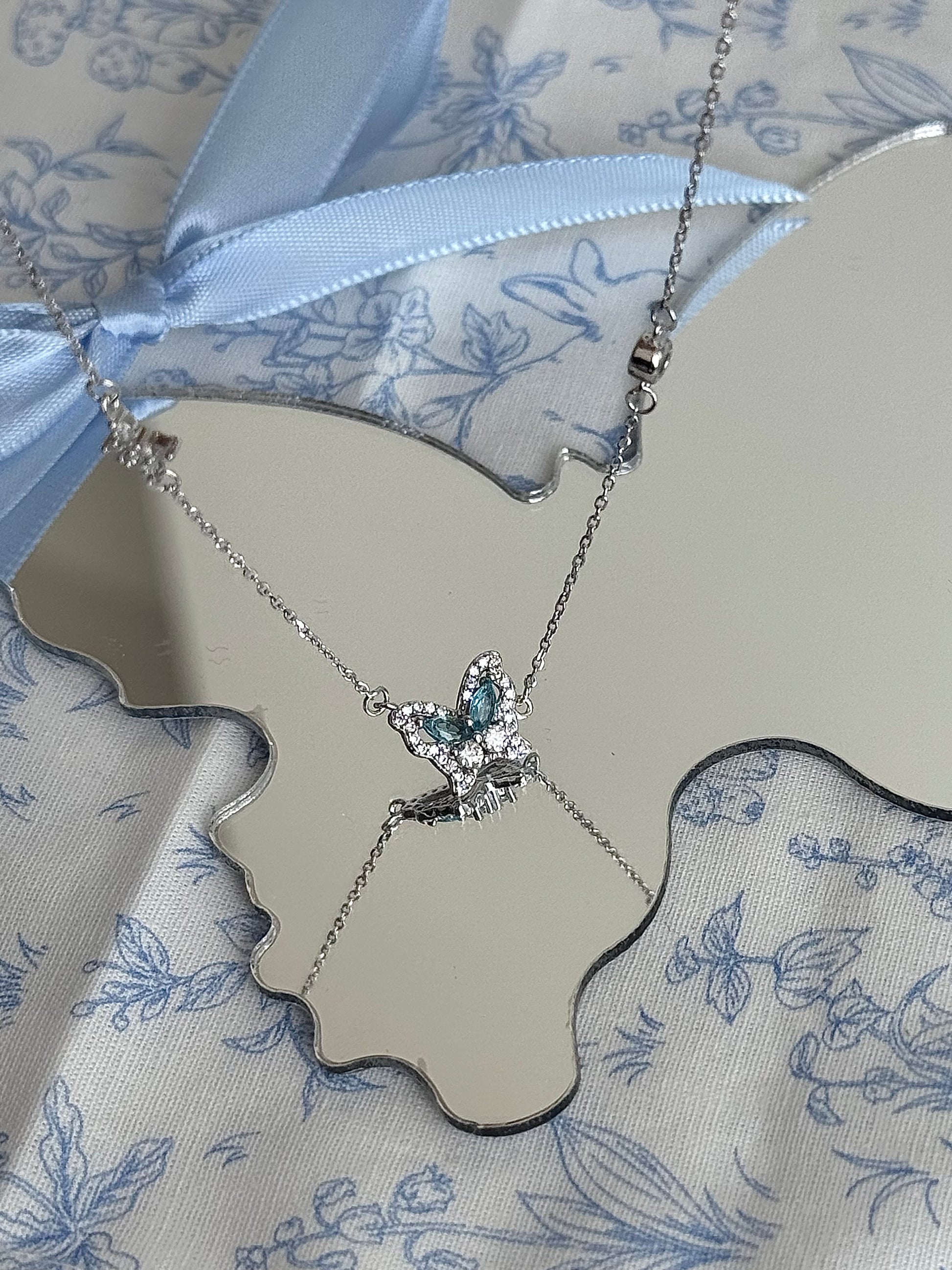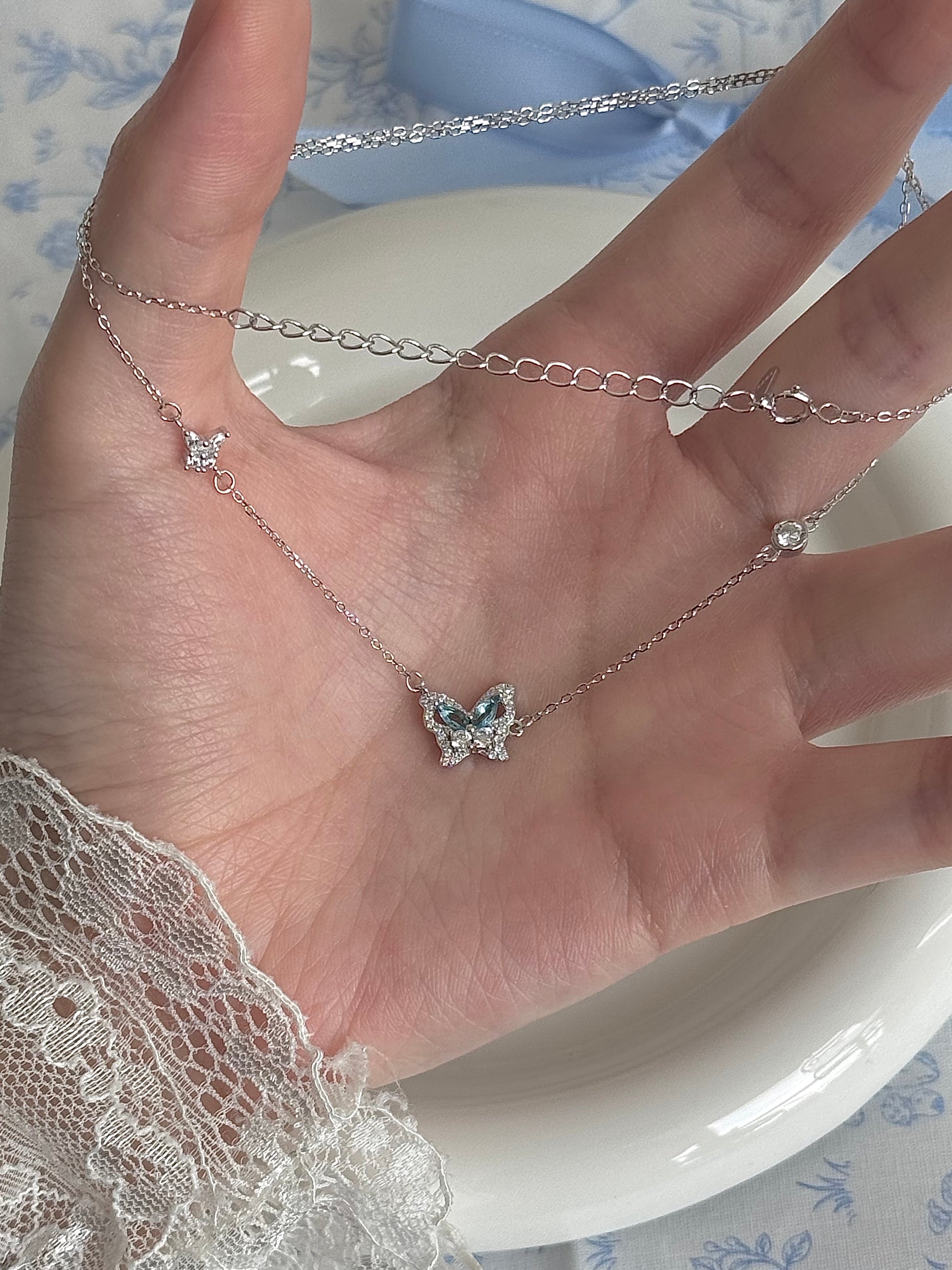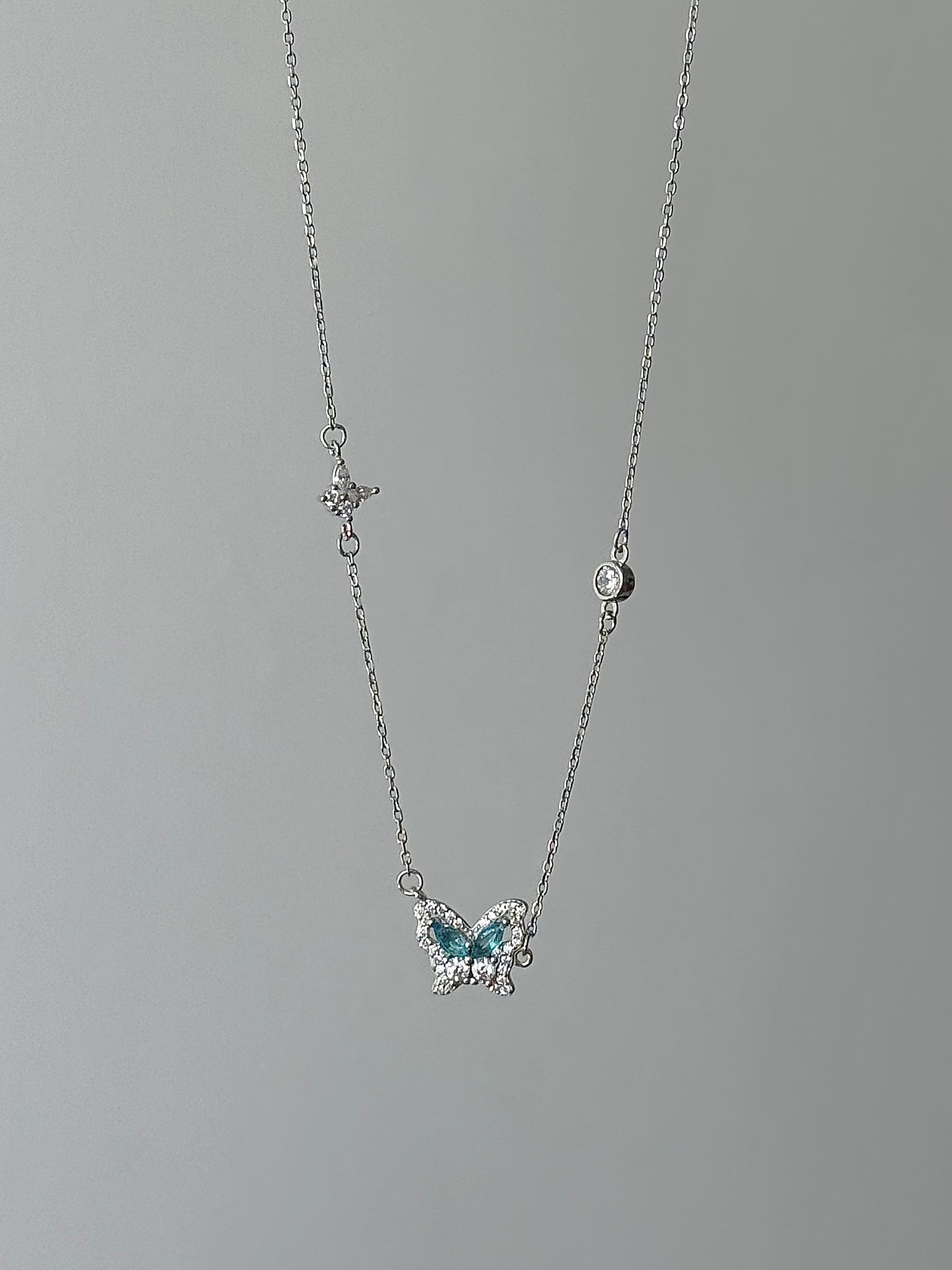 LolaWhite "글레이셔 스피릿 버터플라이" S925 스털링 실버 블루 지르콘 버터플라이 목걸이 - 차갑고 우아한 분위기 & 독특함