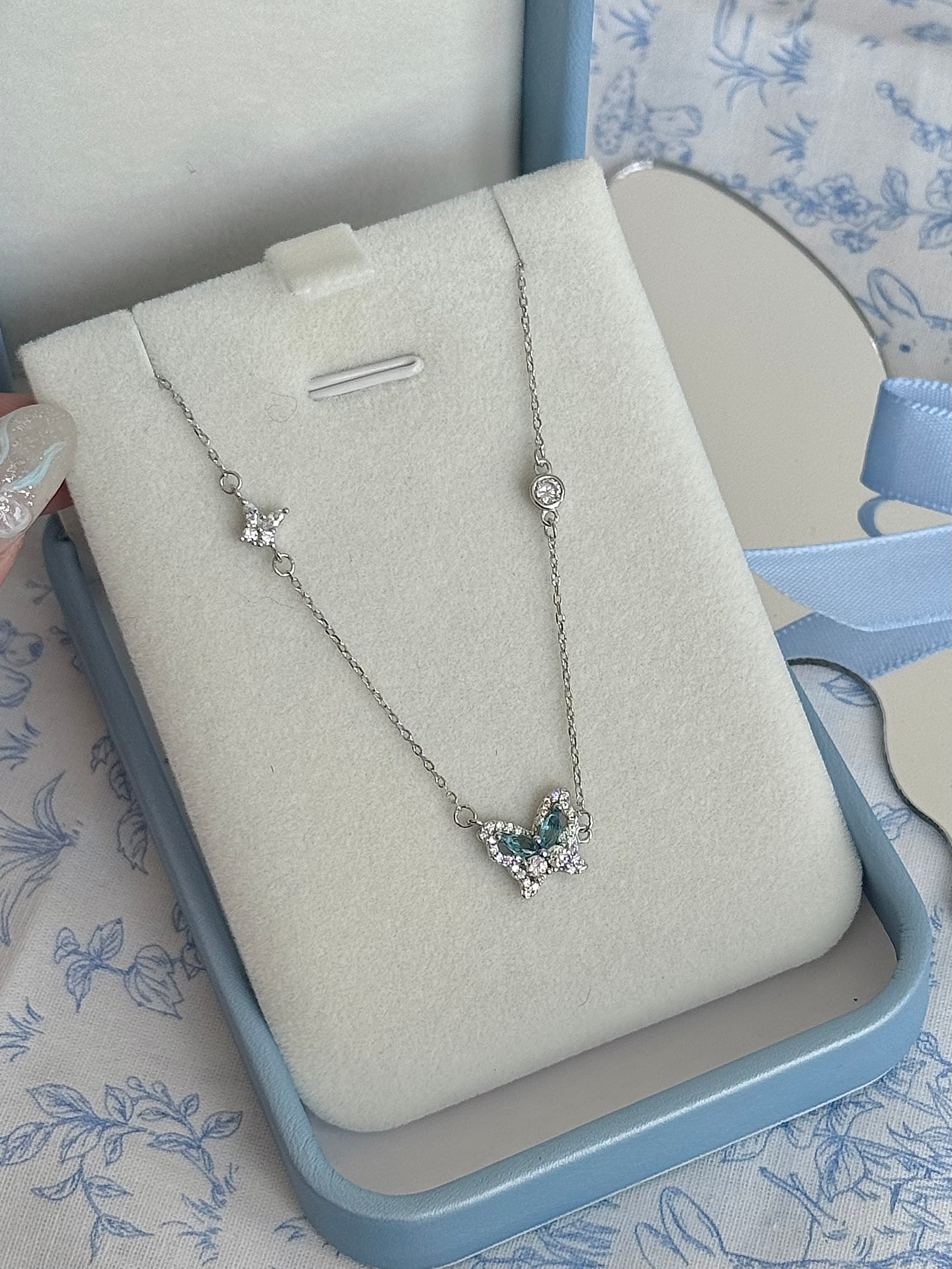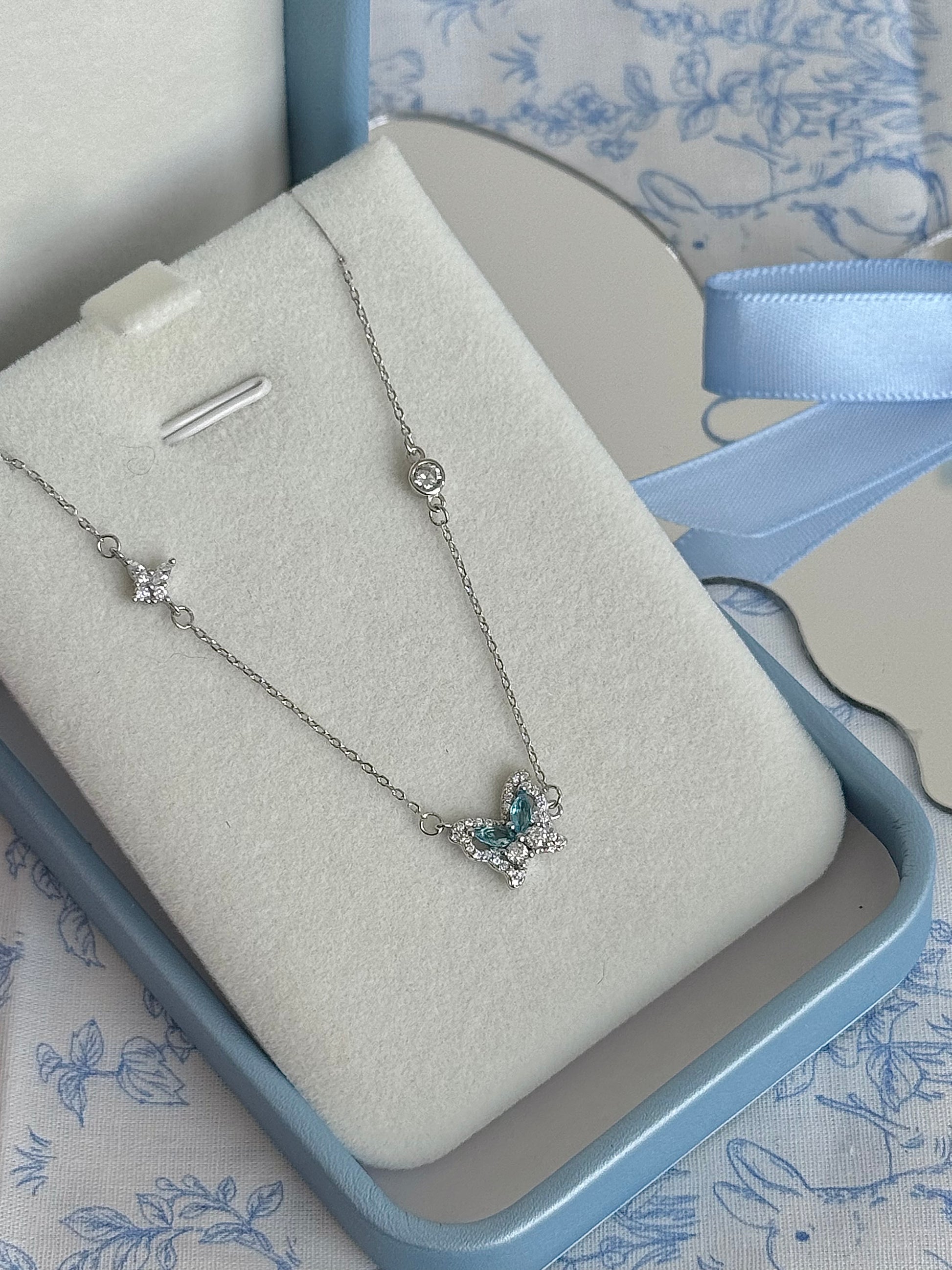 블루 지르콘 버터플라이 펜던트