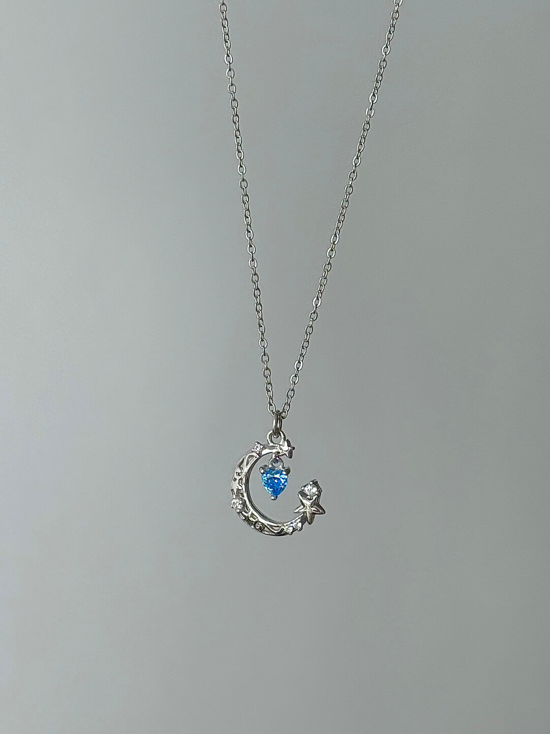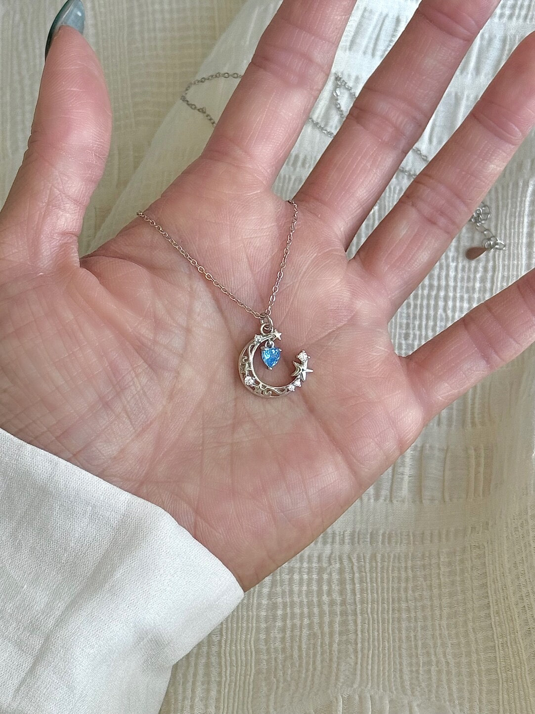 "블루문의 심장" 목걸이로 우주의 가장 잘 숨겨진 비밀을 발견하세요. 이 매혹적인 작품은 섬세한 초승달 안에 고요한 푸른색 하트가 자리 잡고 있어 우주적이면서도 다정한 사랑을 상징합니다. S925 스털링 실버로 정교하게 제작된 이 특별한 천상의 디자인은 부드러우면서도 심오한 우아함을 발산하여, 평범함을 넘어선 아름다움을 추구하는 이들에게 특별한 보물이 될 것입니다.