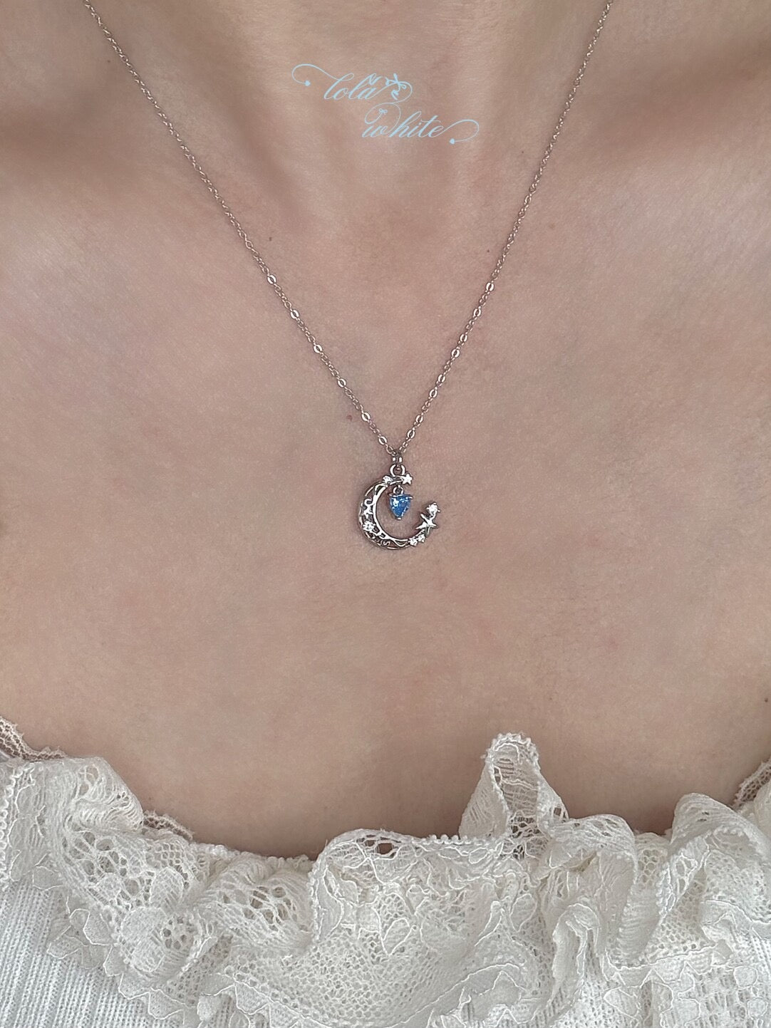 롤라화이트 "블루문의 심장" S925 스털링 실버 천상 목걸이