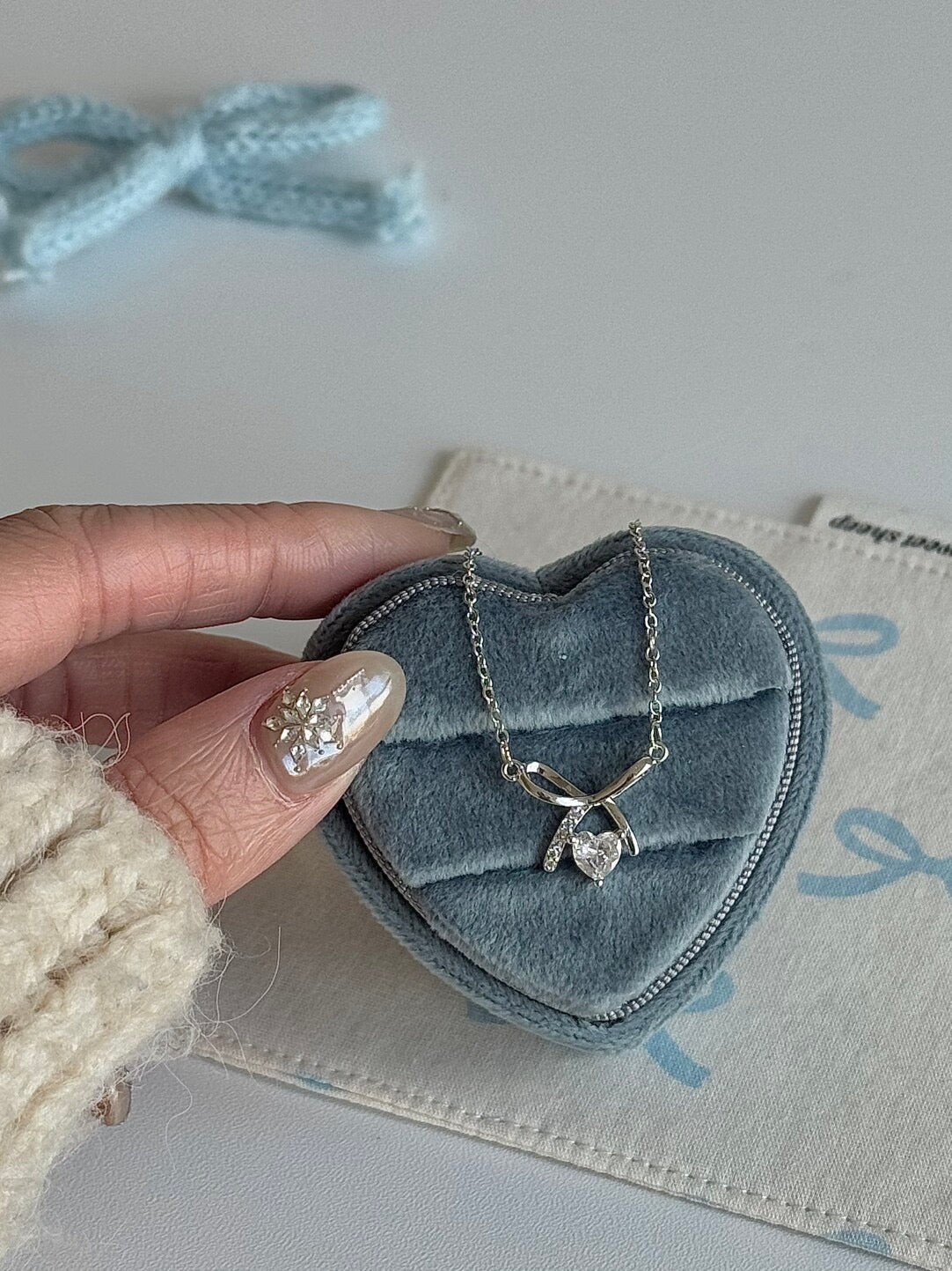 "헤븐리 보우" 네크리스와 함께 신성한 로맨스를 느껴보세요. 이 매혹적인 작품은 반짝이는 하트 위에 우아하게 묶인 섬세한 보우가 특징이며, 눈부신 지르콘으로 화려하게 장식되어 있습니다. 현대의 뮤즈를 위해 디자인된 이 네크리스는 섬세하고 기발한 정신을 담아, 달콤한 우아함과 이세계적인 매력이 조화를 이룹니다. 페어리코어에서 영감을 받은 반짝임을 더하기에 완벽한 이 네크리스는 특별함을 추구하는 온화한 영혼을 가진 사람들에게 바치는 헌사입니다.