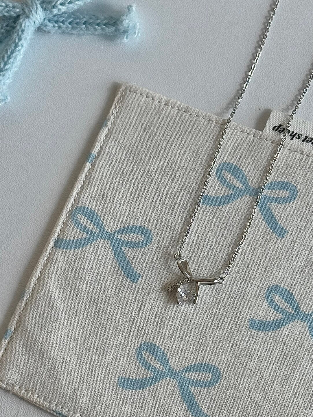 롤라화이트 "헤븐리 보우" 하트 & 지르콘 목걸이 - 섬세하고 기발한 디자인