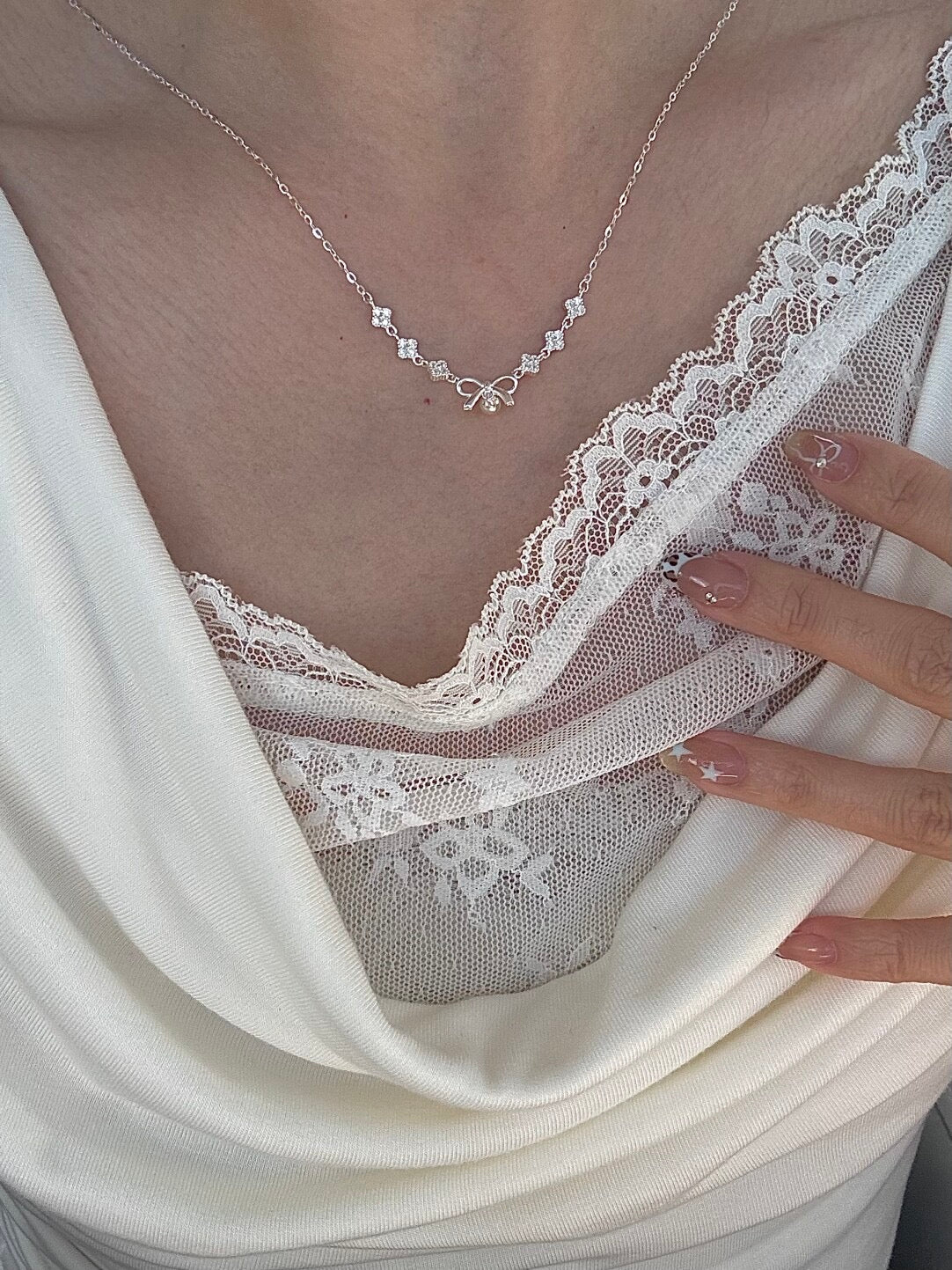 This "Lucky Christmas Bow" necklace combines a festive bow with a lucky four-leaf clover, crafted from solid S999 sterling silver. The charming design blends holiday cheer with timeless symbolism, creating a piece that's both sweet and meaningful. With its delicate details and elegant finish, this necklace captures the popular Korean aesthetic - perfect for gifting or adding a touch of festive charm to your everyday style.