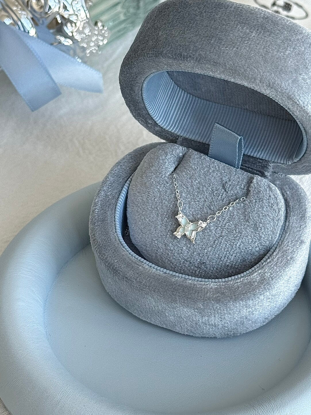 This "Variations of Light Wings" necklace features a delicate butterfly pendant crafted from solid S999 pure silver, capturing the serene beauty of light filtering through forest leaves. Its design embodies a blend of ethereal elegance and woodland grace, perfect for adding a touch of subtle, nature-inspired charm to any outfit.
