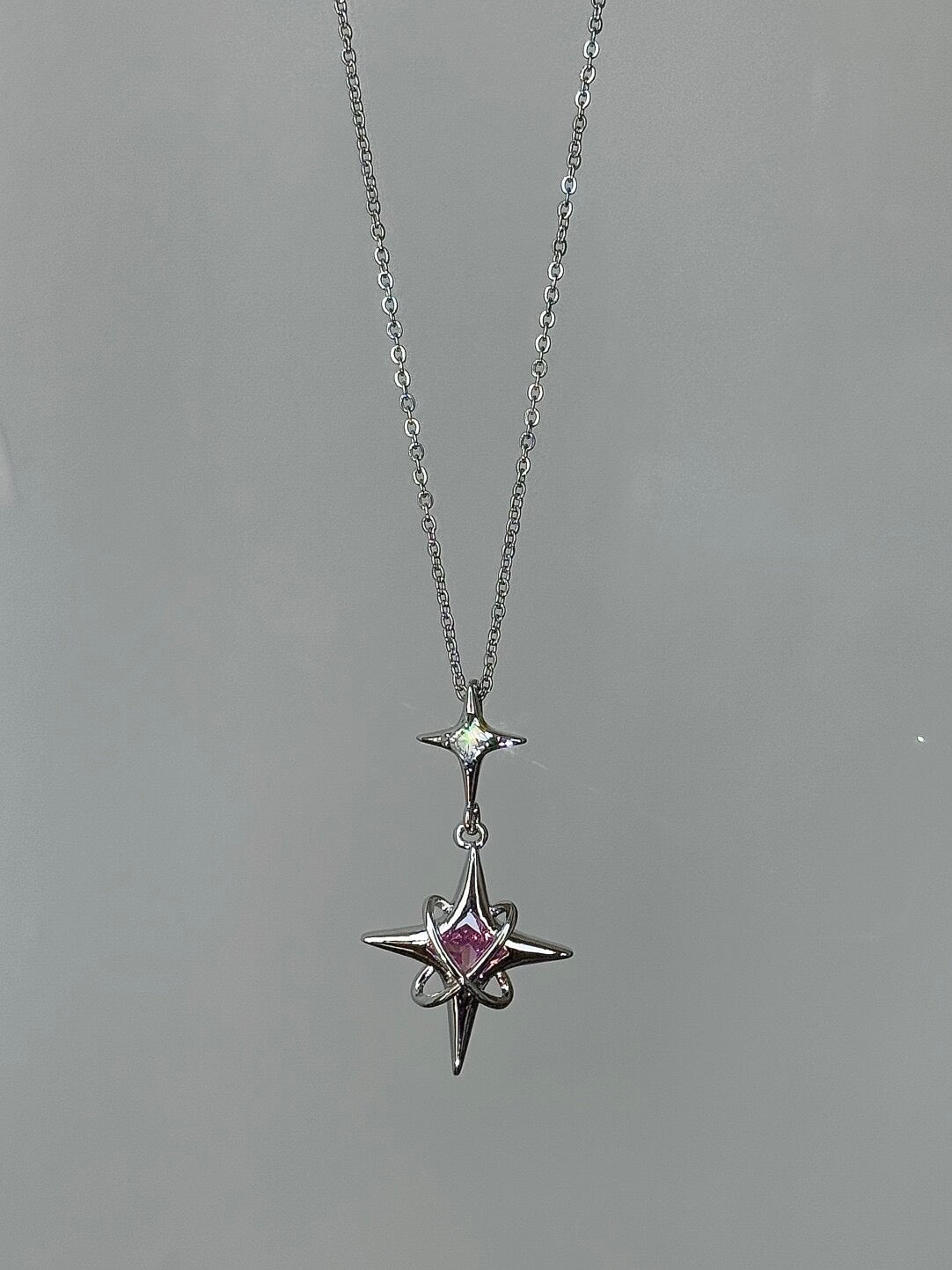 롤라화이트 "비너스" 핑크 스타리 지르콘 샤이닝 스타 목걸이 - 달콤하고 부드러우며 독특함
