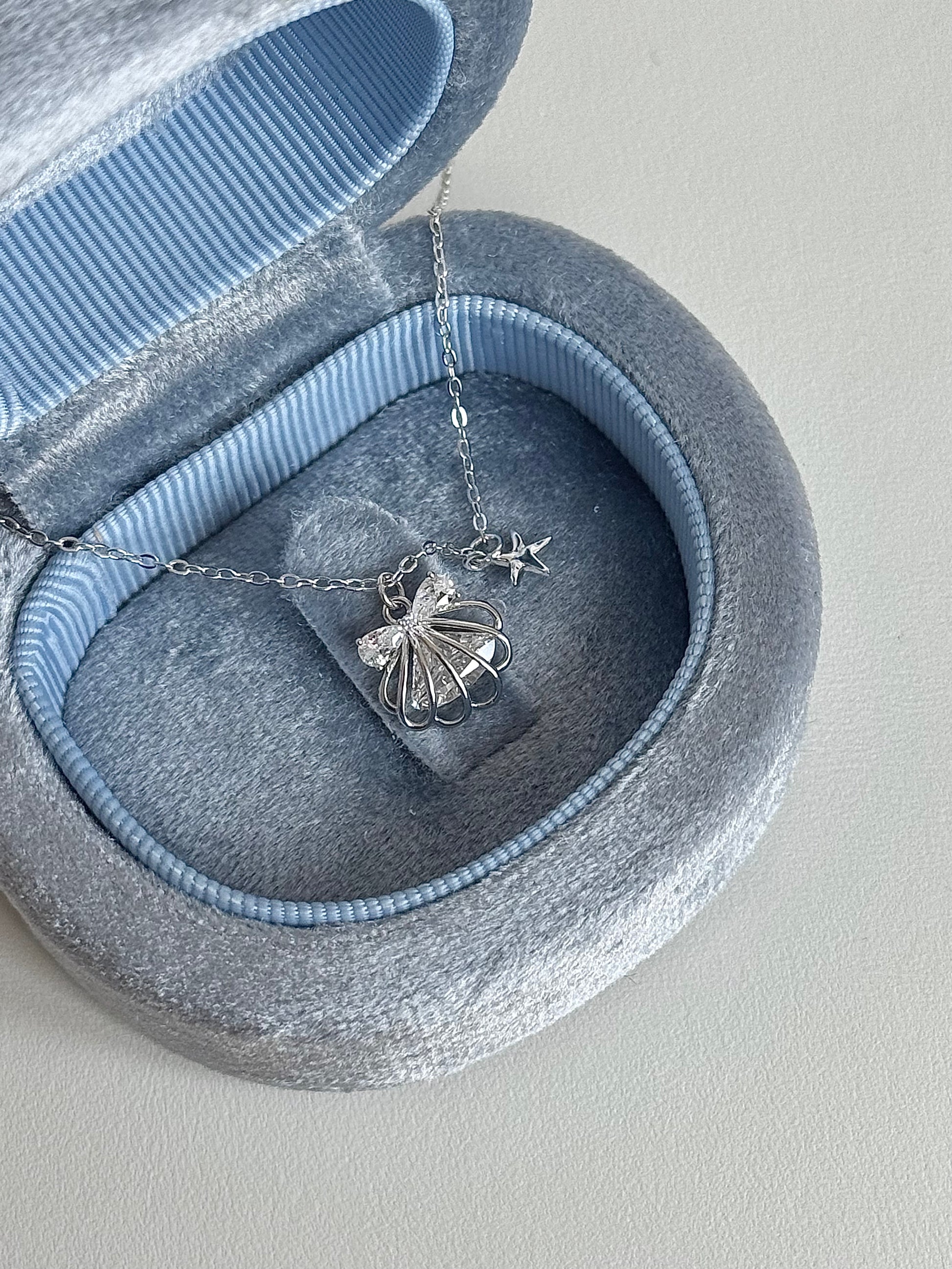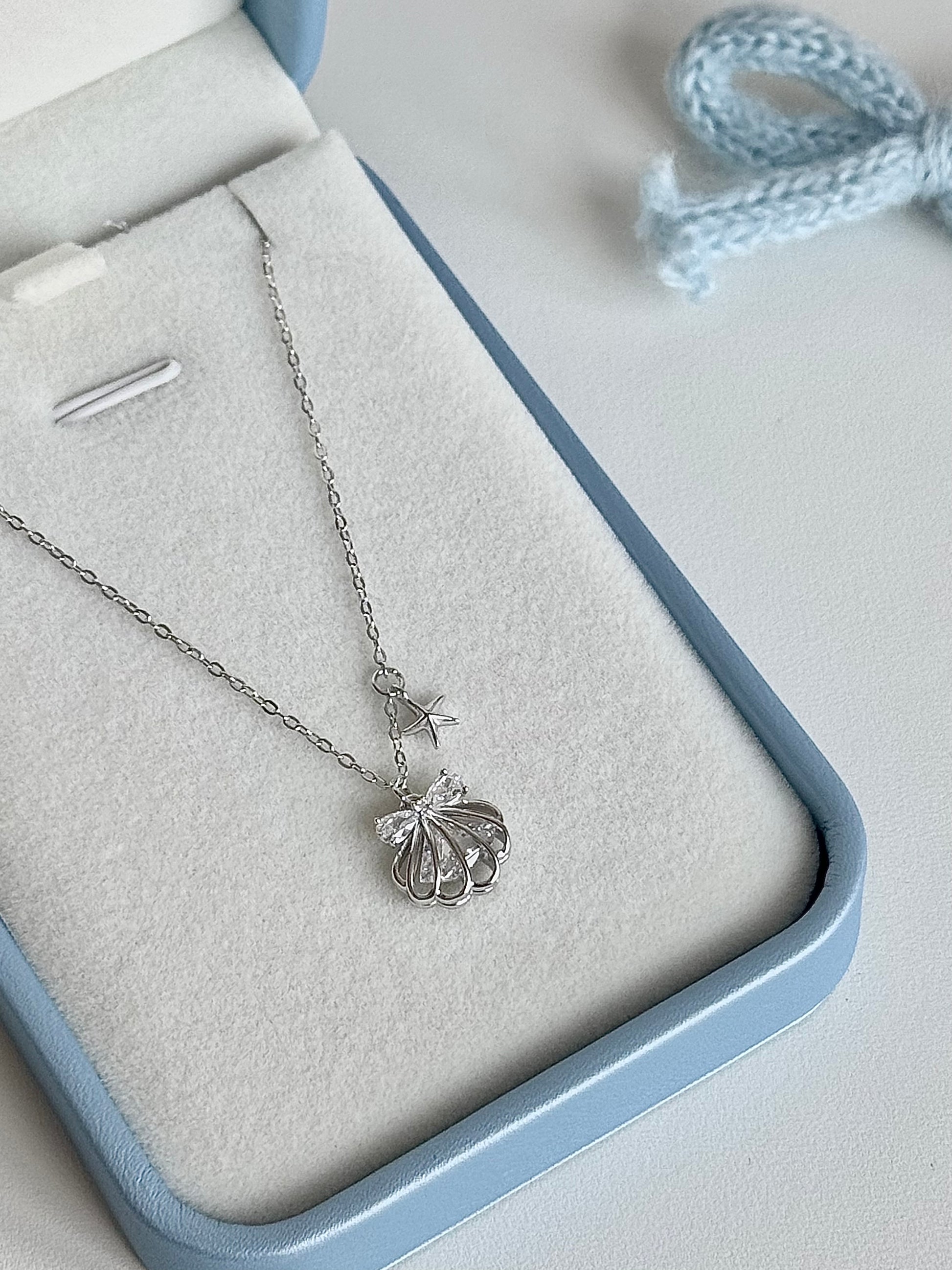Experience the embrace of celestial luxury with our "Satin Starlight Kiss" necklace. Each curve of this exquisite shell pendant is kissed by light, featuring a high-flash cut that transforms its surface into a constellation of brilliant mirrors, capturing and reflecting light from every angle. Crafted from solid S999 silver and elevated with a luminous white gold plating, it embodies a silky, radiant coolness that feels both luxurious and serene.